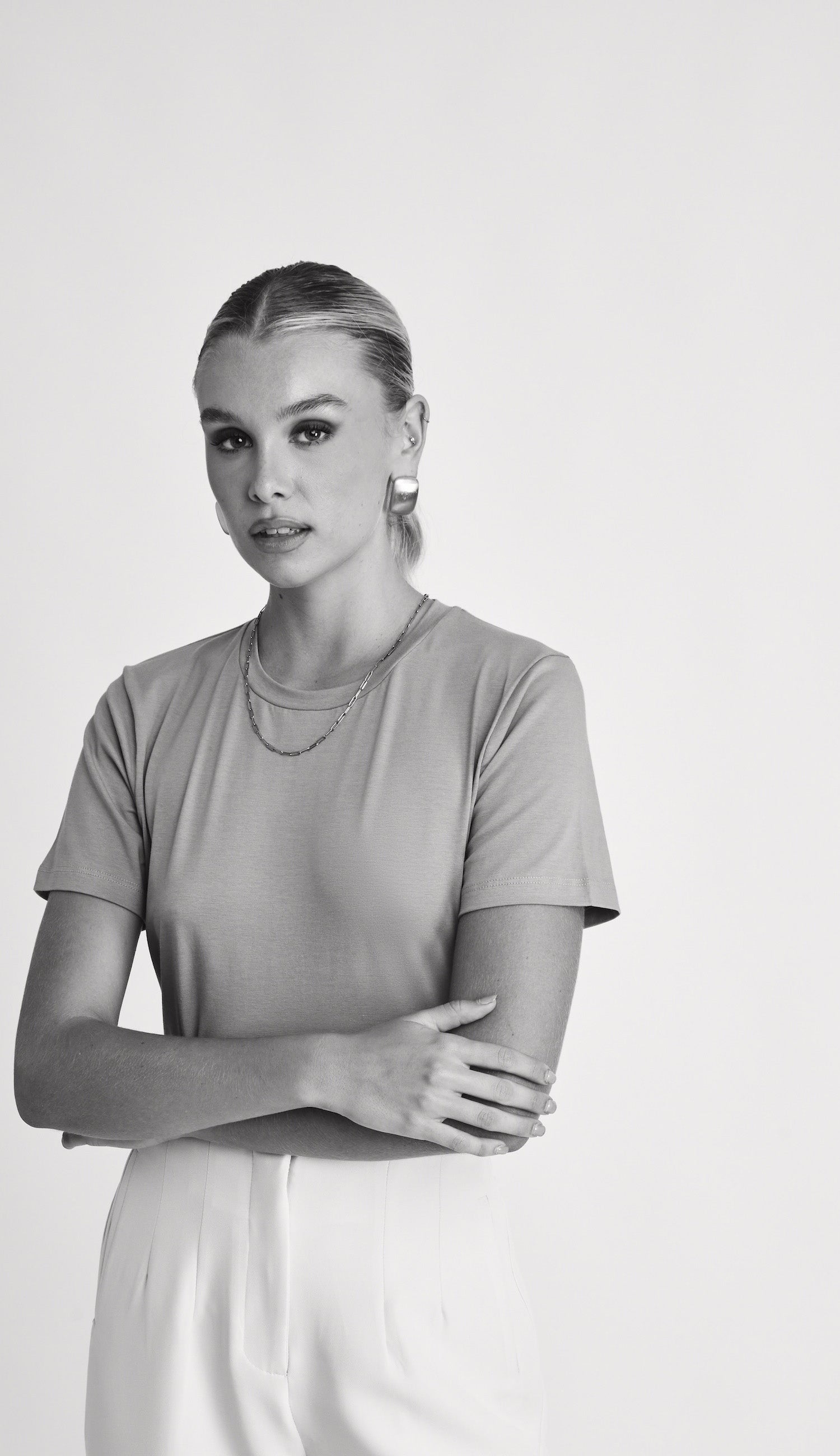Blusa baby look confeccionada em algodão egípcio. Possui modelagem ajustada, decote redondo e mangas curtas. A peça coringa perfeita que compõe qualquer look.