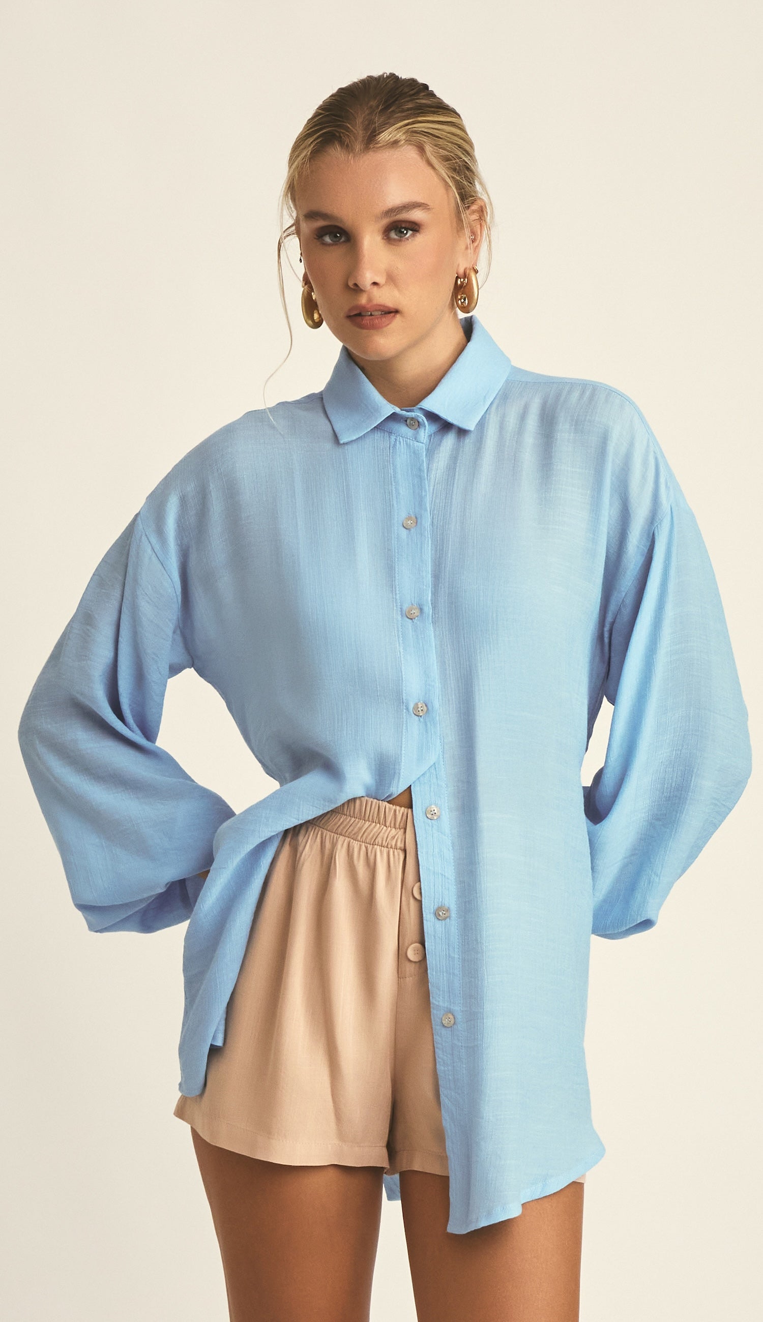 Camisa confeccionada em poliviscose texturizada com aspecto de linho. Possui modelagem mais soltinha, fechamento com botões madrepérola, lastex franzido nos punhos das mangas e um detalhe torcido nas costas com abertura. É perfeita para combinar com um shortinhos e rasteira em um lindo dia de sol.