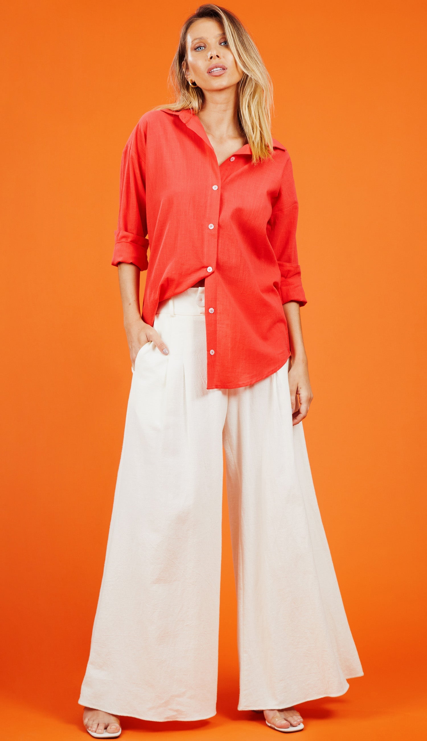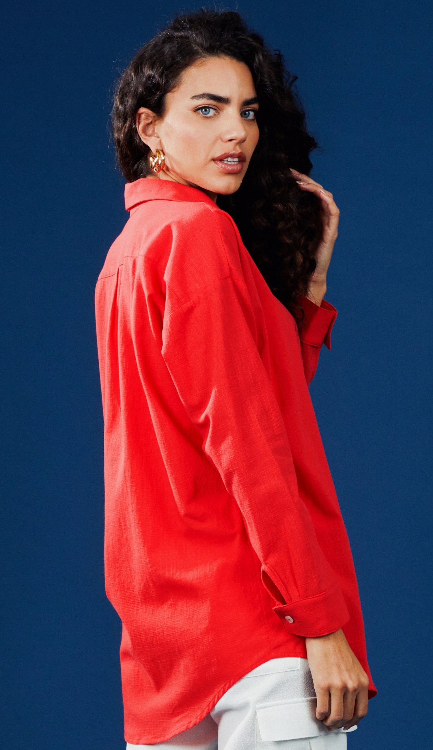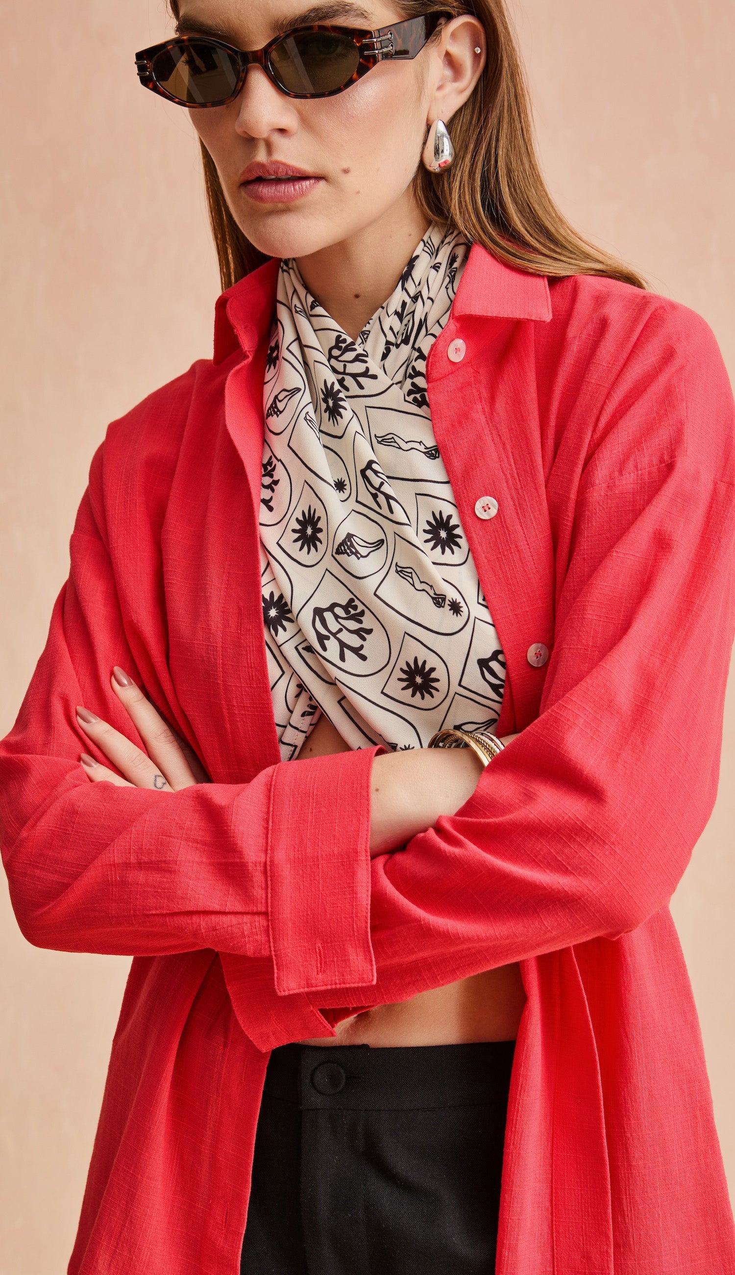 Camisão confeccionada em algodão flamê texturizado. Modelagem ampla e longa, peça super versátil podendo ser amarrada em laço, fechamento frontal por botões madrepérola.