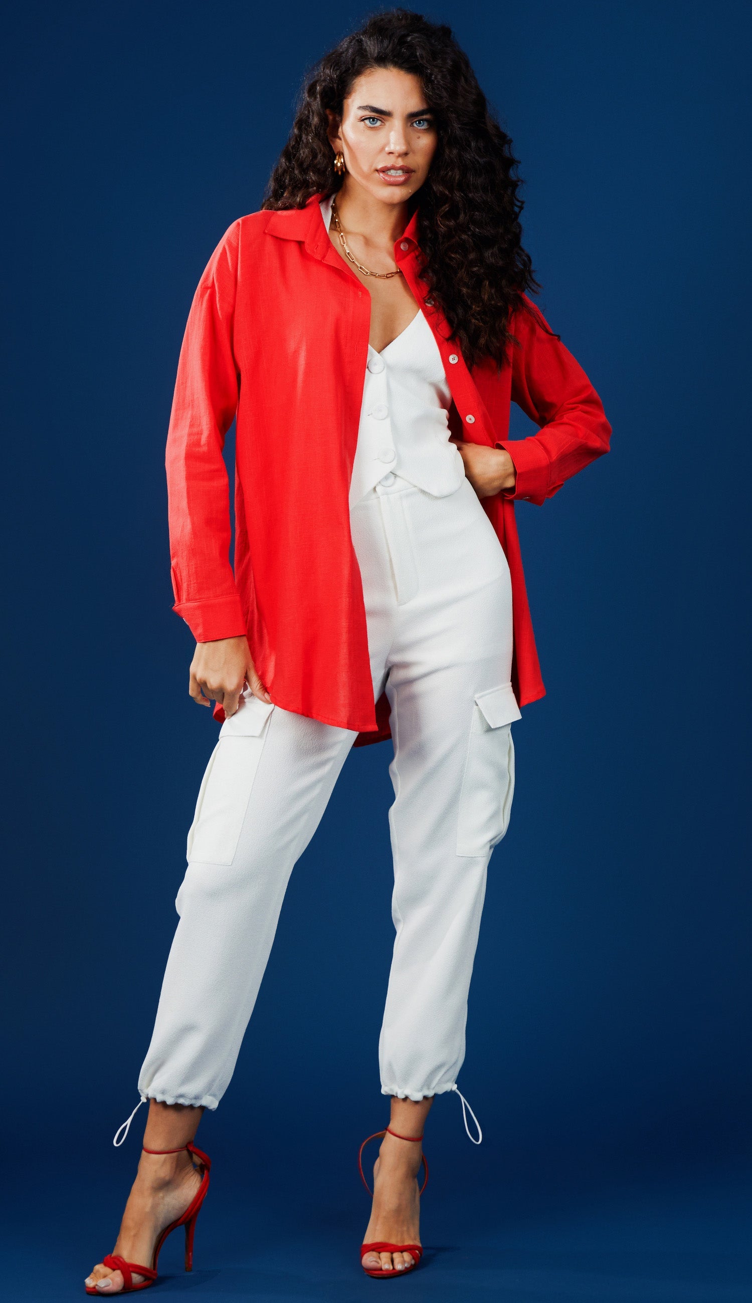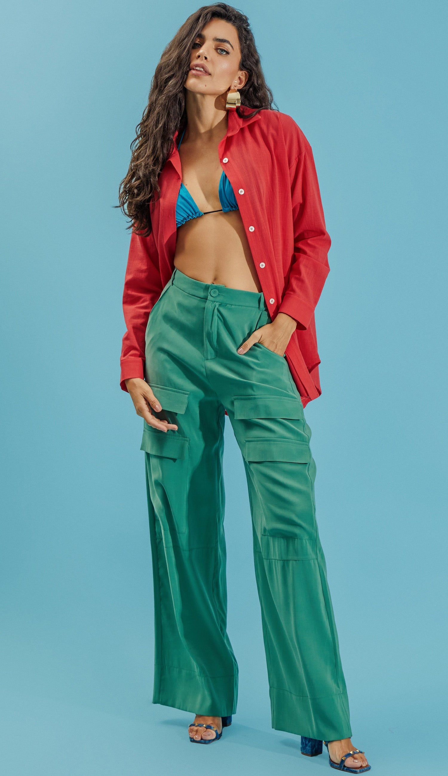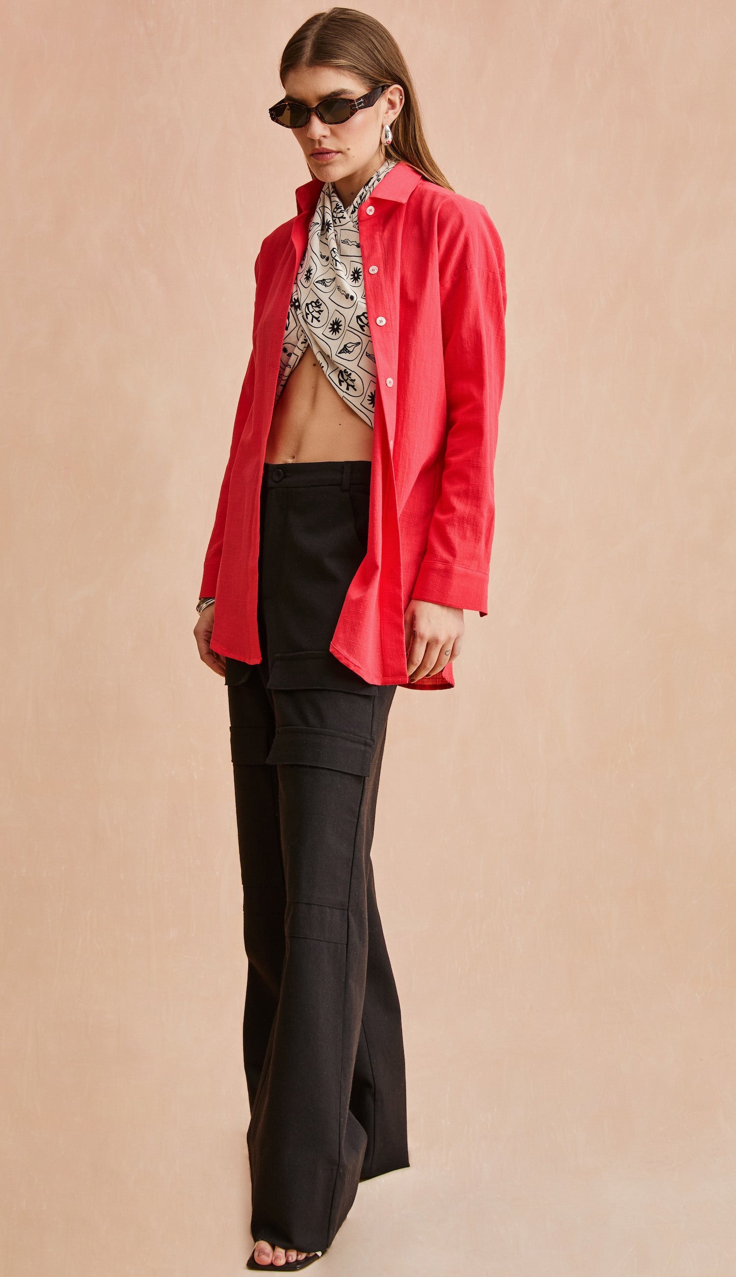 Camisão confeccionada em algodão flamê texturizado. Modelagem ampla e longa, peça super versátil podendo ser amarrada em laço, fechamento frontal por botões madrepérola.
