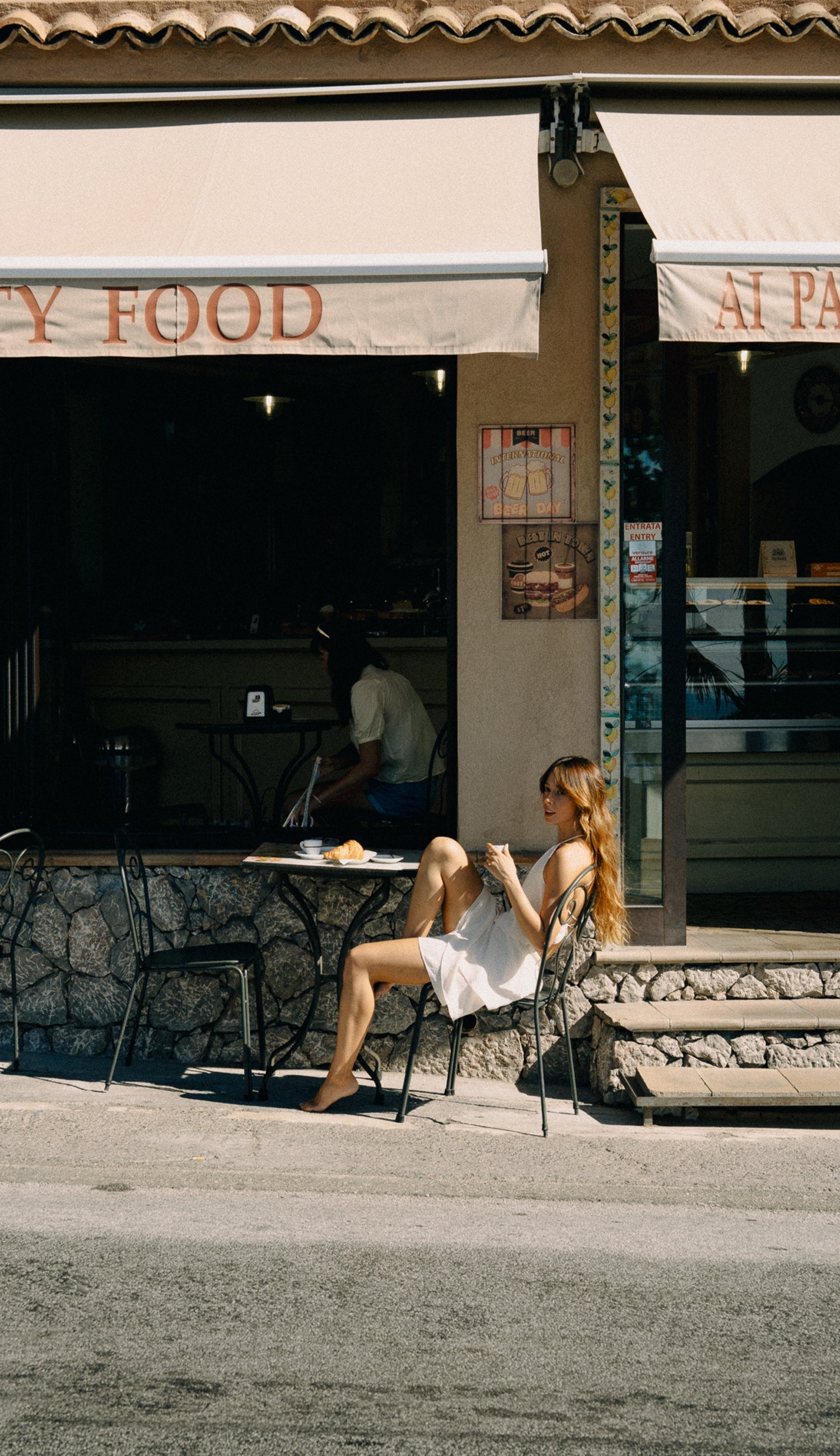 Conjunto confeccionado em crepe leve. A blusa é cropped e frente única, possui decote halter com franzidinhos na gola, decote bem aberto nas costas com tirinhas bem compridas para ajuste, transpasse e amarração na nuca e costas, com ponteiras de metal em formato de cocnhinha; conta também com tecido duplo no busto para não ficar transparente, sendo o de baixo mais justinho com elástico na barra para maior conforto e o de cima, sobreposto a este, mais soltinho e fluido. O shorts é soltinho, possui forro e fechamento lateral por zíper invisível. E acompanha ainda uma sainha em camadas pra sobrepor ao shorts, que tem modealgem evasê, elástico franzido no cós e azelhas laterais para transpassar a tirinha da blusa, fixando-a à parte de baixo.