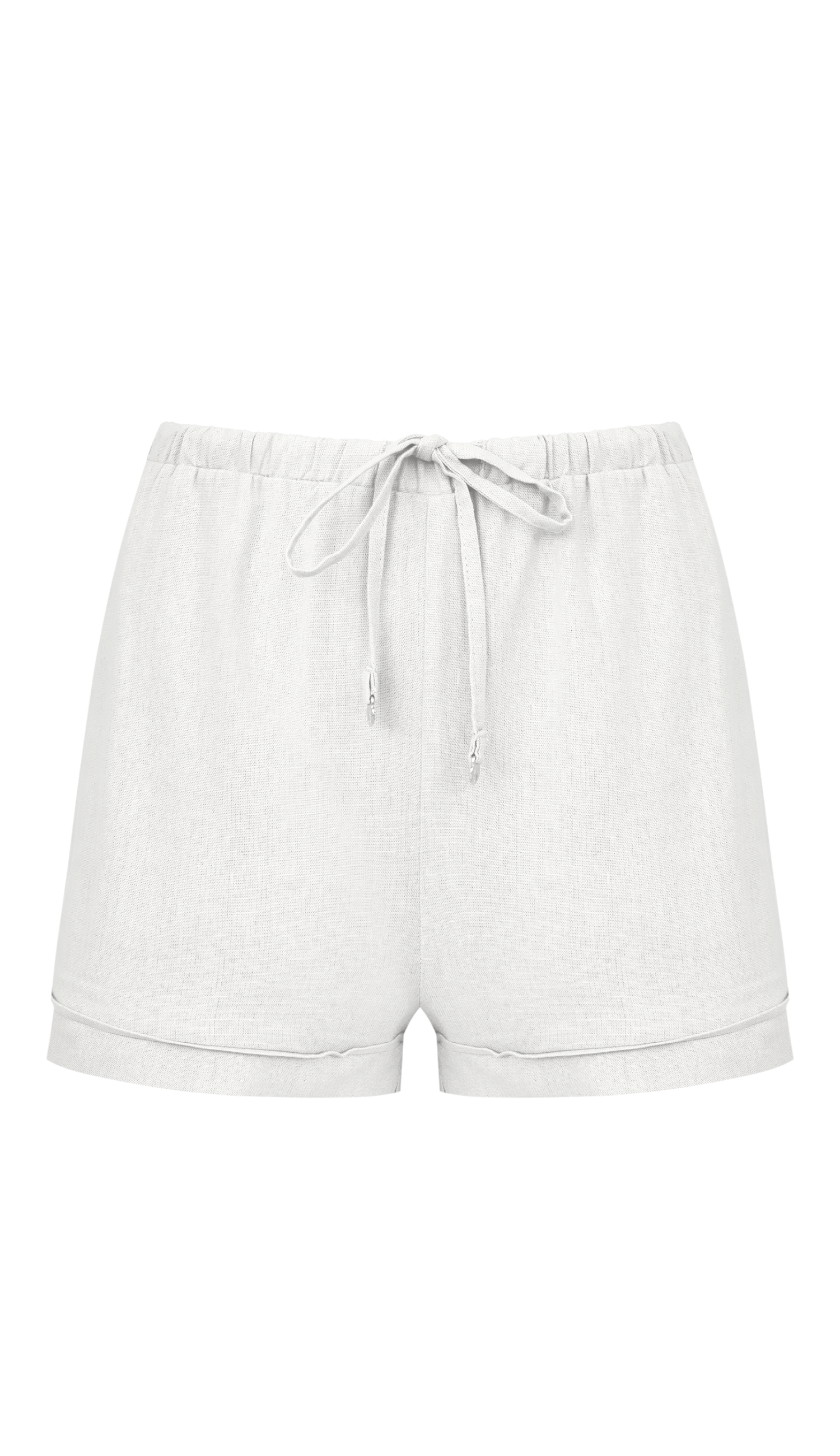 Conjunto confeccionado em linho. A blusa não possui mangas e conta com decote reto com silicone elástico interno para maior segurança, modelagem soltinha e sobreposição do mesmo tecido com recorte assimétrico na barra, criando um efeito de camadas muito bonito, garantindo também que não fique transparente por ter o tecido duplo. O shorts possui forro, modelagem soltinha, elástico no cós com tirinhas embutidas para amarração com pingentinhos de metal em formato de conchinha, bolsos laterais e o detalhe com viés do mesmo tecido na barra, que dá um toque super charmoso na peça.