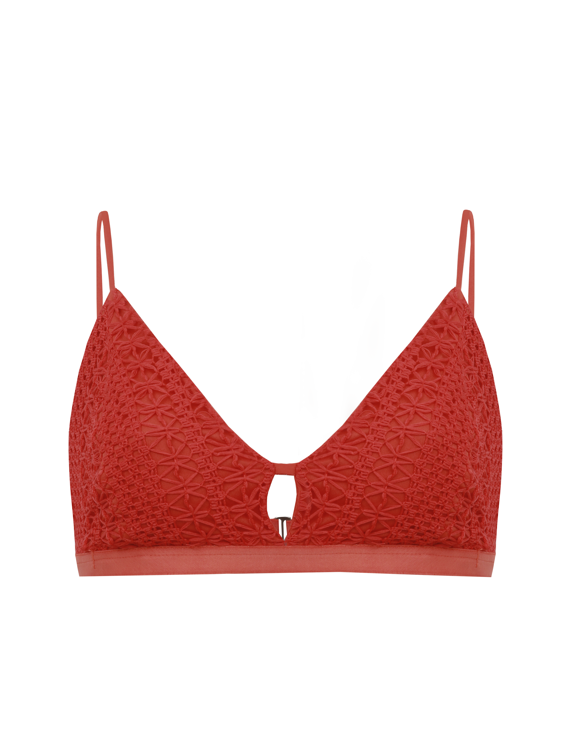Vestido longo com forro confeccionado em viscose com toque e aspecto de linho. Possui decote frente única em V com alcinhas para amarrar no pescoço, recorte franzidinho abaixo do busto em efeito blusê, saia reta com fendas laterais e fechamento traseiro por zíper invisível. Acompanha top triângulo confeccionado em renda vazada que deixa o forro à mostra e possui alcinhas reguláveis e elástico abaixo do busto com fecho de metal para ajuste e fechamento nas costas.